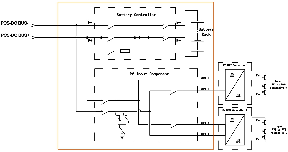 3.Volitelný PV DC-couplovaný přístup, aby odpovídal hub-and paprskovému MPPT ovladači;